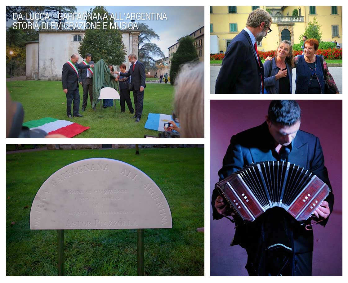 It was a Celebration day in Porta San Pietro in Lucca for the unveiling of the foundation stone for a monument to Astor Piazzolla. The ceremony was a lively event: officials from local municipalities were joined by Argentinian representatives – it is a story of emigration and music, a journey from Europe to the Americas. And the evening ended with a Milonga, a concert of music by Piazzolla and traditional Tango dances.